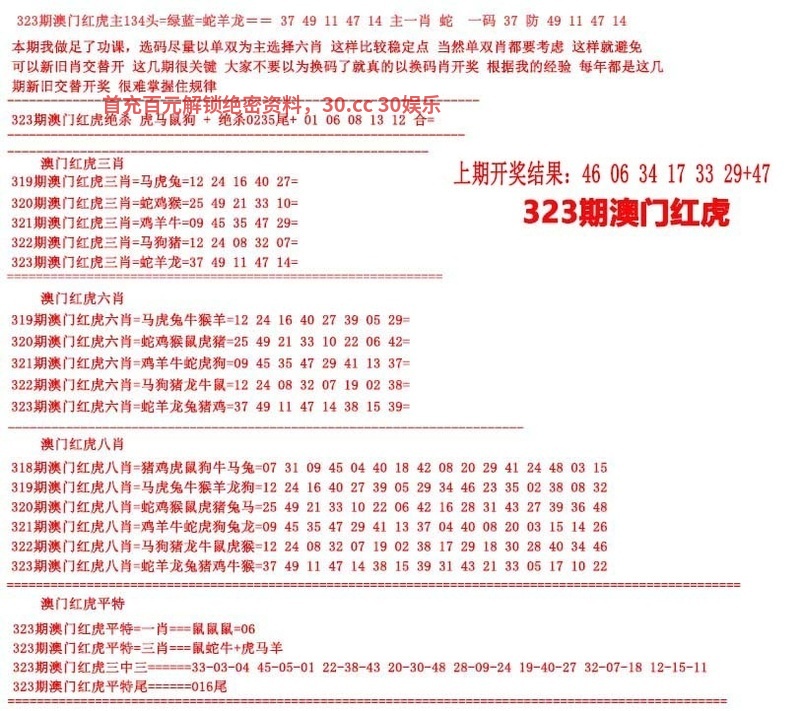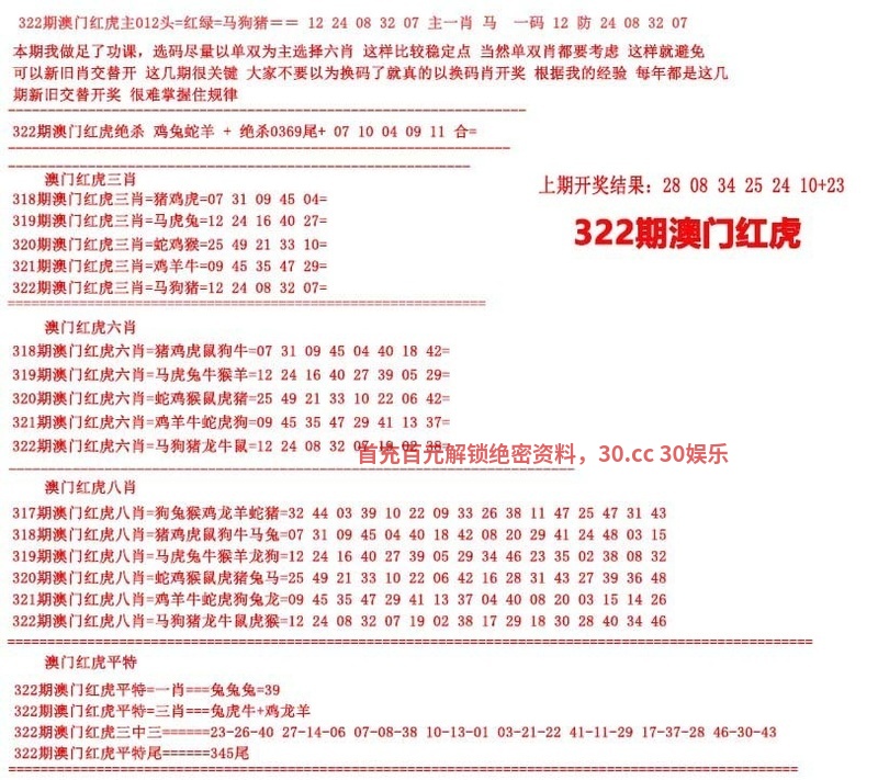 | 323期:【红虎好料】『两季中特』 | 红虎好料 |
